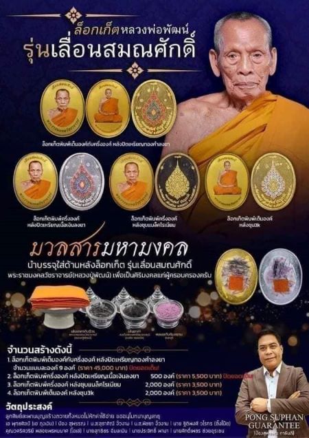 ล็อกเก็ตหลวงพ่อพัฒน์ ปุญญกาโม วัดห้วยด้วน รุ่นเลื่อนสมณศักดิ์ ฉากทอง หลัง3K เลข 135 มาพร้อม กล่องเดิม **จองมา3500**