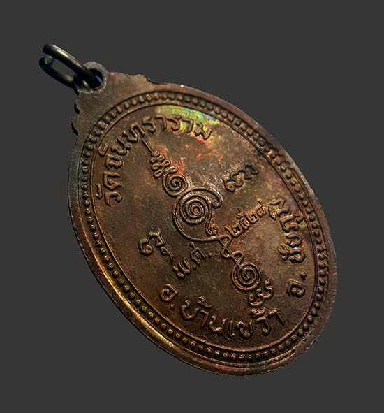 พระครูปลัดแสวง ผลฺญาโณ วัดจันทราราม ต.ตลาดแร้ง อ.บ้านเขว้า จ.ชัยภูมิ เหรียญรุ่น๒ เนื้อทองแดงรมดำ ปี 2528