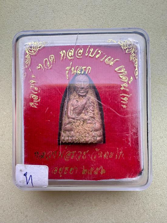 หลวงปู่ทวดพิมพ์เตารีด รุ่นแรกหลวงพ่อรวย วัดตะโก ปี56 โค้ตทหาร เนื้อนวโลหะ หมายเลข 3428 |