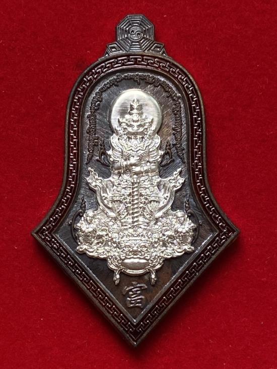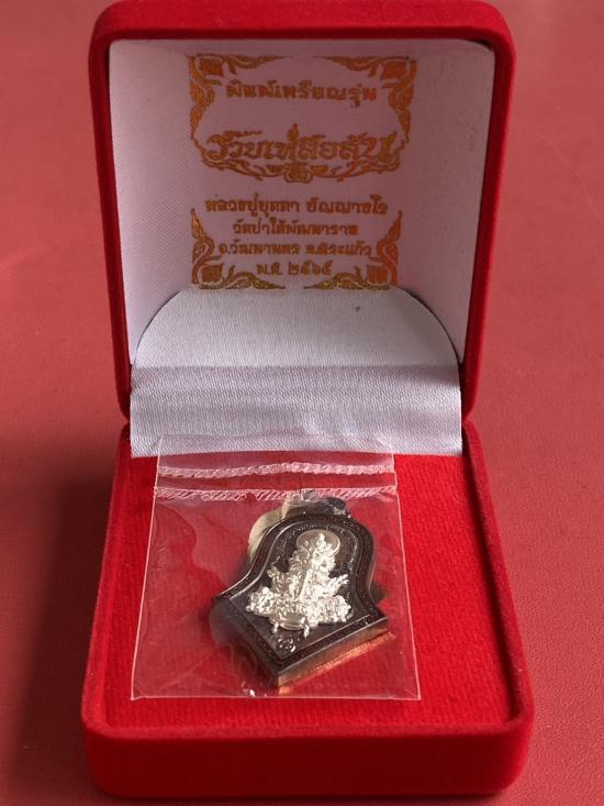 เคาะเดียวแดง หลวงปู่บุดดา ท้าวเวส รุ่น รวยเหลือล้น เนื้อ นวะโบราณ หน้ากากเงินลงยาขอบแดง |
