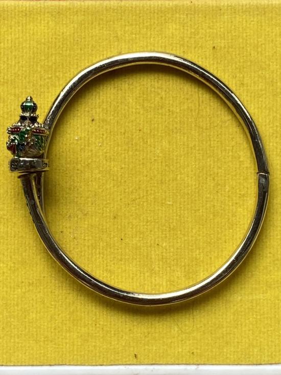 เคาะเดียวแดง หลวงปู่บุดดา กำไลท้าวเวส เนื้อ ทองขาวขัดเงาลงยาเขียว |