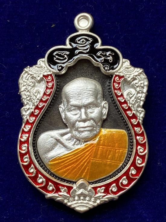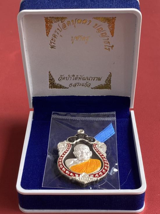 เคาะเดียวแดง หลวงปู่บุดดา รุ่น บูชาครู เนื้อ นวะหน้ากากเงินขอบเงินลงยา รายการที่4