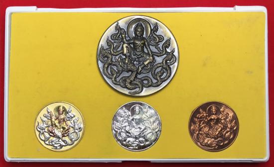 แดงเคาะแรก...ชุดเหรียญกรรมการใหญ่ องค์พ่อจตุคามรามเทพ ศาลหลักเมืองนครศรีธรรมราช รุ่น บารมีร่มไทร ปี 2550 ชุด 4 เหรียญ ( มีเนื้อเงินแท้ น้ำหนัก 14.9 กรัม) พร้อมกล่องเดิมครับ