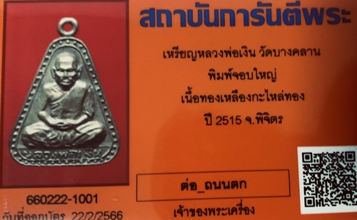 2สถาบัน การันตี เหรียญจอบใหญ่15หลวงพ่อเงิน บางคลาน ปี 2515 มาพร้อมบัตรการันตี,สมาคมฯแท้แน่นอนครับ