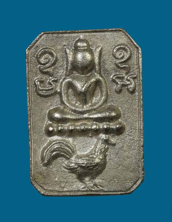 เหรียญหล่อ พระพุทธประทับไก่ หลวงพ่อเชิญ วัดโคกทอง ปี34**(เนื้อเงิน)**พร้อมเลี่ยมกันผิว
