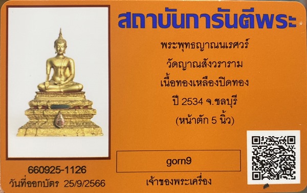 พระบูชา สมเด็จพระพุทธญาณนเรศวร์ สธ. ปี2534 หน้าตัก 5นิ้ว ฉลองครบ 3รอบ สมเด็จพระเทพฯ พระองค์ทรงเททองสร้างน้อย หายาก