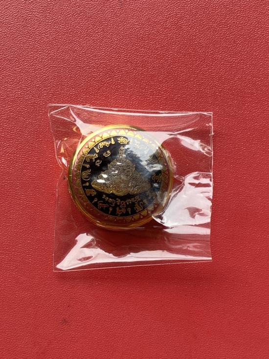 เนื้อ โลหะชุบทองลงยาสีดำขอบสีแดง ขนาด3.2ซม |