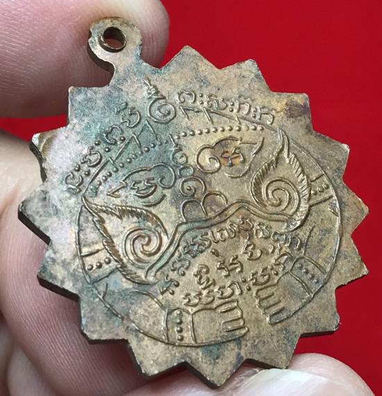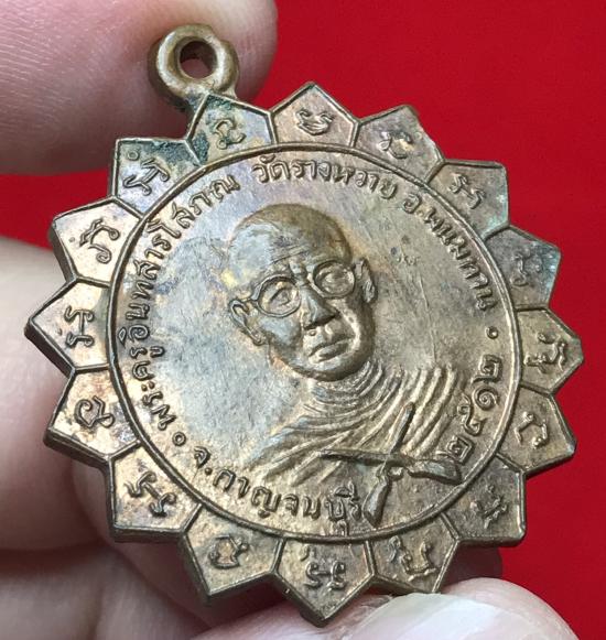 เหรียญ"ปืนไขว้" พระครูอินทสารโสภณ (หลวงพ่อเสริม) วัดรางหวาย จ.กาญจนบุรี ปี 2512 เนื้อทองแดงผิวไฟ |