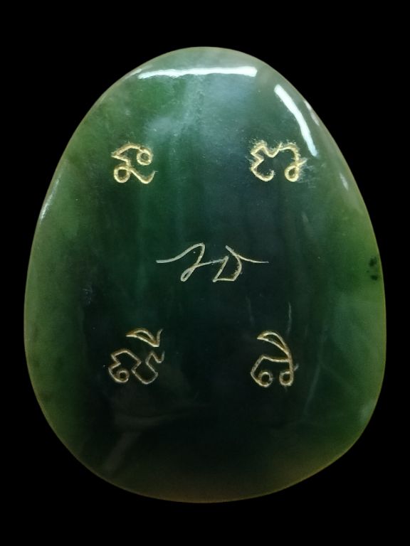 พระเนื้อหยกแกะ ๖๐ปี วัดธรรมมงคล พิมพ์พระปิดตา หลัง ยันต์นะชาลีติ หลวงพ่อวิริยังค์ วัดธรรมมงคล สภาพสวยเดิม แกะจากส่วนหนึ่งขององค์พระใหญ่ พระเครื่องรายการนี้ทางเว็บยังไม่ออกบัตรรับรองให้นะคะเนื่องจากยังไม่มีข้อมูลอ้างอิงค่ะคน