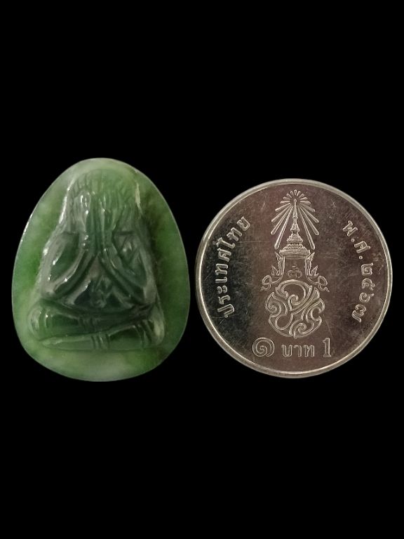 พระเนื้อหยกแกะ ๖๐ปี วัดธรรมมงคล พิมพ์พระปิดตา หลัง ยันต์นะชาลีติ หลวงพ่อวิริยังค์ วัดธรรมมงคล สภาพสวยเดิม แกะจากส่วนหนึ่งขององค์พระใหญ่ พระเครื่องรายการนี้ทางเว็บยังไม่ออกบัตรรับรองให้นะคะเนื่องจาก