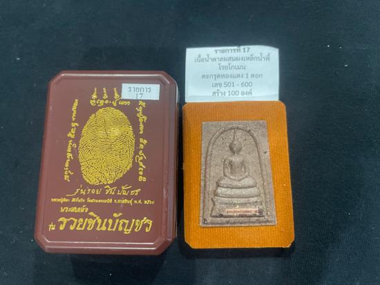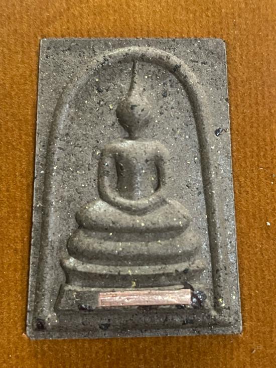 พระสมเด็จรวจชินบัญชร รุ่นรวยชินบัญชร หลวงปู่ศิลา สิริจันโท เนื้อ น้ำตาลผสมผงเหล็กน้ำพี้ โรยโกเมน ตะกรุดทองแดง 1 ดอก ตอกโค็ตนำฤกษ์ สร้าง 100 องค์ หมายเลข 540 พร้อมกล่อง