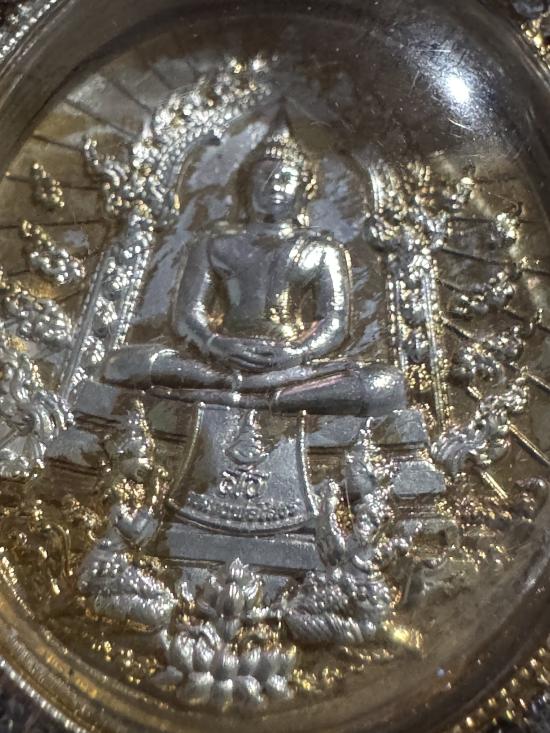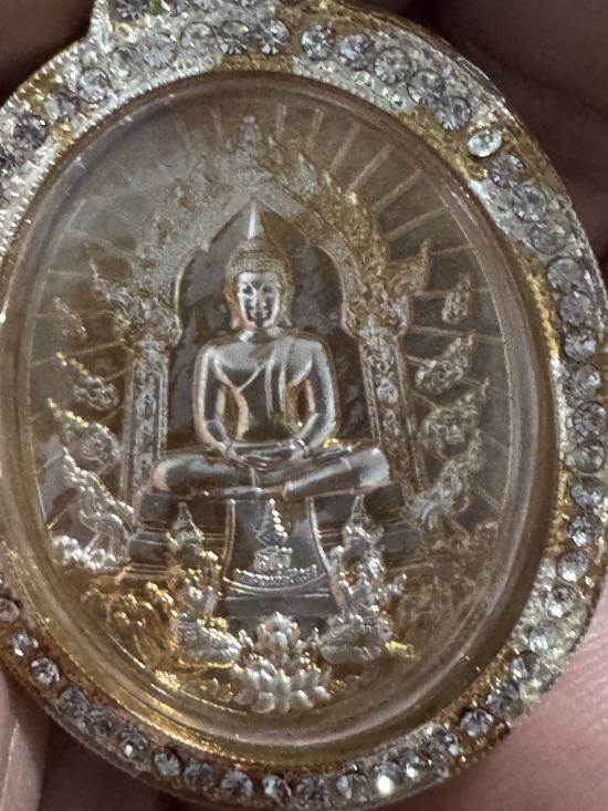 เหรียญหลวงพ่อโสธร เนื้อชุบชุแบล็คพลายทอง เลี่ยมกรอบชุบแบล็คพลายทองฝังพลอย ตอกโค๊ต สธ ตอกเลข 5