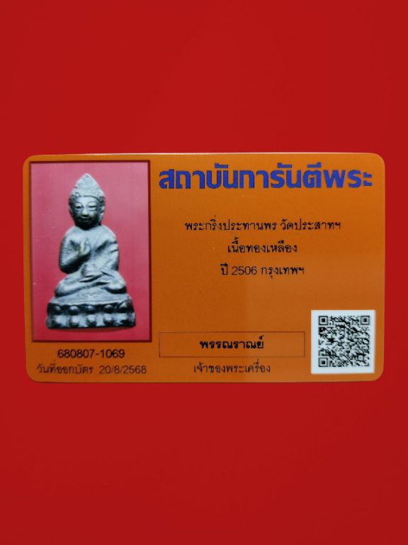 พระกริ่งประทานพร วัดประสาทฯ ปี 2506 มาพร้อมบัตรรับรองพระแท้ พึ่งออกมาใหม่ๆ สบายใจได้ค่ะ