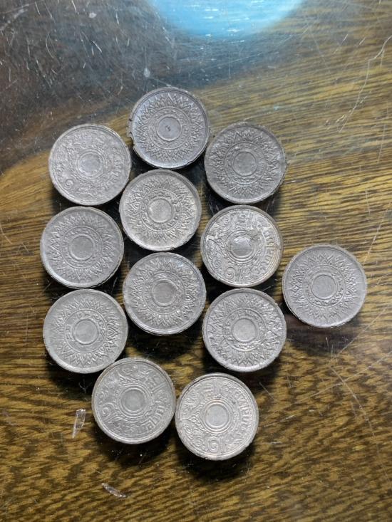 **ทีเดียว 12 เหรียญ **เหรียญดีบุก ราคา 1 สตางค์ ตราลายกระหนก พ.ศ. 2485 รัชกาลที่8