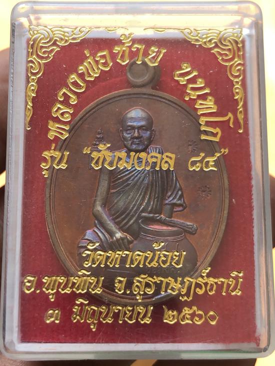 เหรียญรุ่นแรก ชัยมงคล 84 หลวงพ่อซ้าย วัดหาดน้อย อ.พุนพิน จ.สุราษฎร์ธานี เนื้อทองแดง หมายเลข 307 (สร้าง 320 เหรียญ) |