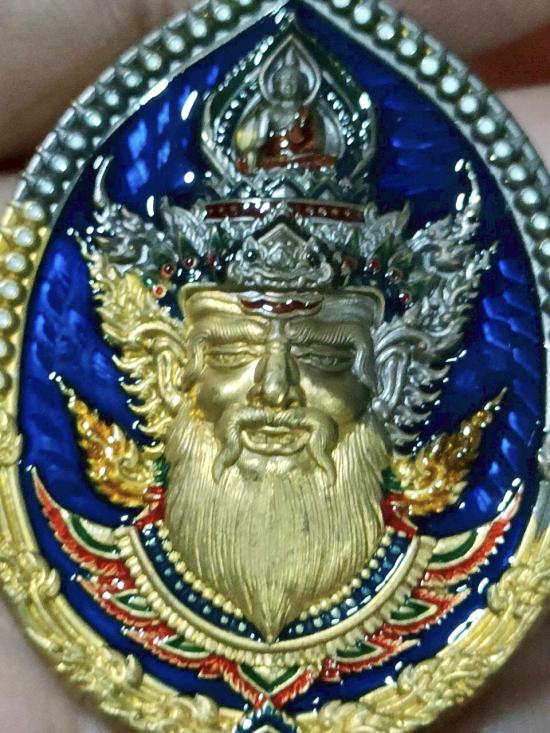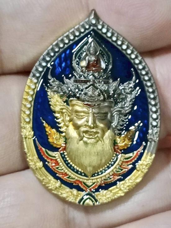 เหรียญพ่อแก่ รุ่นเศรษฐี หลวงปู่ฝั้น วัดศรีถมอรัตน จ.เพชรบูรณ์ เนื้อชนวนลงยาน้ำเงิน+ เครื่องทรง ตอกโค๊ต ช ตอกหมายเลข 24 |