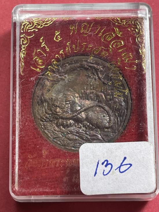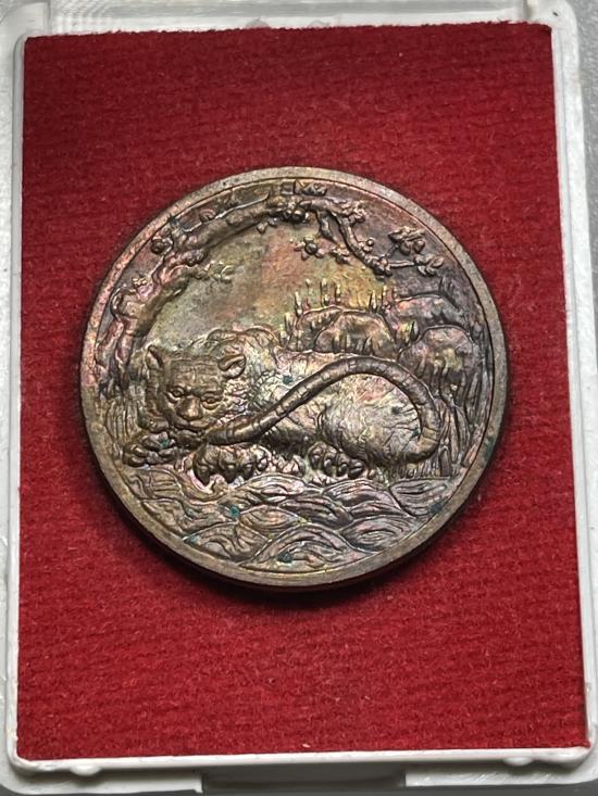 เหรียญพญาเสือเฒ่า เนื้อทองแดง พระอาจารย์ประสูติ วัดในเตา แช่น้ำมันเสือ