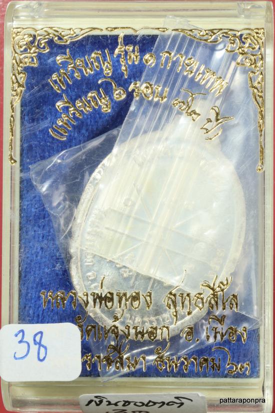 เหรียญหลวงพ่อทอง รุ่นกายเทพ ปี 2563 เนื้อเงิน 99.9 ลงยาสีธงชาติ หนัก 15.24 กรัม หมายเลข 38