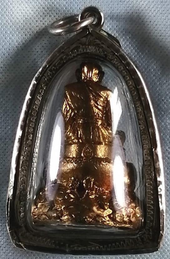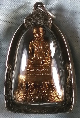 ชื่อพระเครื่อง รูปหล่อหลวงปู่ทิม พิธีแต้เม้ง ฐานปูปลาฝังมวลสารผงพราย กรอบเงินเก่า
