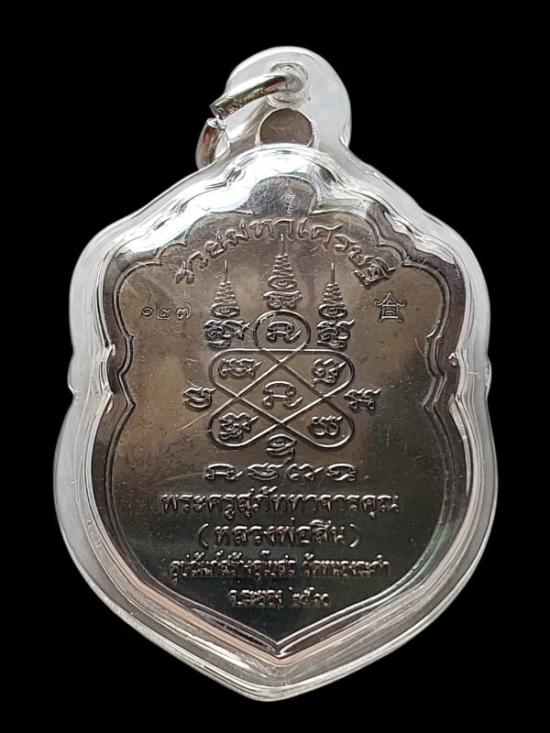 เหรียญเสมาหัวเสือ หลวงพ่อสิน รุ่นแรก รวยมหาเศรษฐี จัดสร้างปี 2560 พิธีพุทธาภิเษกใหญ่ ณ โบสถ์วัดละหารใหญ่ อ.บ้านค่าย จ.ระยอง อันศักดิ์สิทธิ์ ด้วยจำนวนการสร้างที่ชัดเจน บล็อค-แม่พิมพ์ ถูกทำลายเสร็จสิ้นหลังพิธี แต่ละเนื้อตอกโค๊ตและหมายเลขกำกับแยกโค๊ตและแยกเนื้อชัดเจน เนื้อนวะหน้าเงิน ขอบเงิน ลงยา 3 สี จำนวนการสร้าง 299 เหรียญ เหรียญนี้หมายเลข ๑๒๗ สวยหรู สง่างาม 1 ใน 299 เหรียญ สร้างน้อยหายากค่ะ