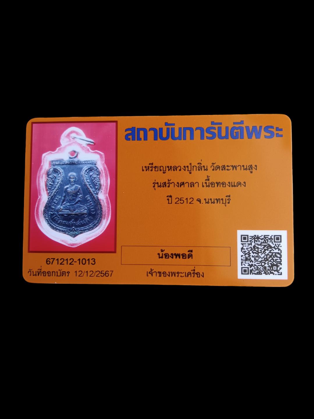เหรียญหลวงปู่กลิ่นวัดสะพานสูงรุ่นสร้างศาลาเนื้อทองแดงปี 12 มาพร้อมบัตรรับรอง
