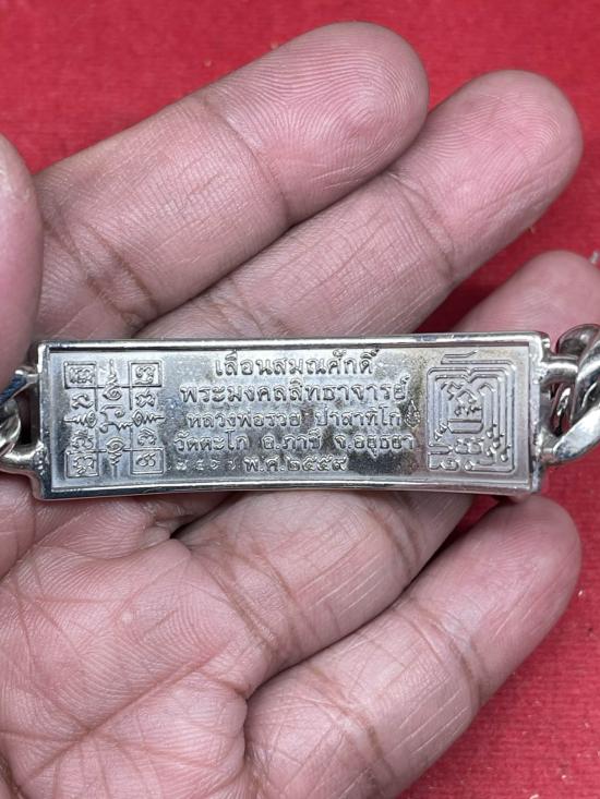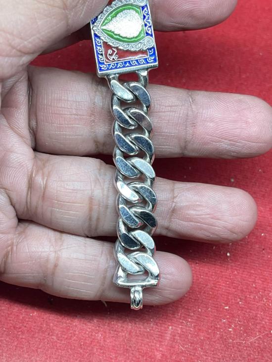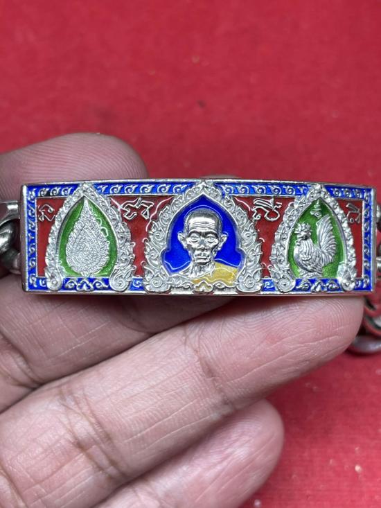 หลวงพ่อรวย วัดตะโก จ.อยุธยา เลสข้อมือ รุ่นเลื่อนสมณศักดิ์ ปี2559 เนื้อเงินลงยา ขนาด4บาท นิยม