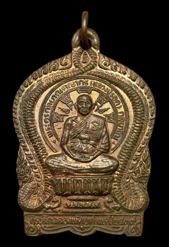 เหรียญนั่งพาน ฉลองพัดยศ พระครูกัลยาณคุณากร หลวงปู่รอด วัดกระสังข์ จ.ศรีสะเกษ ปี2539