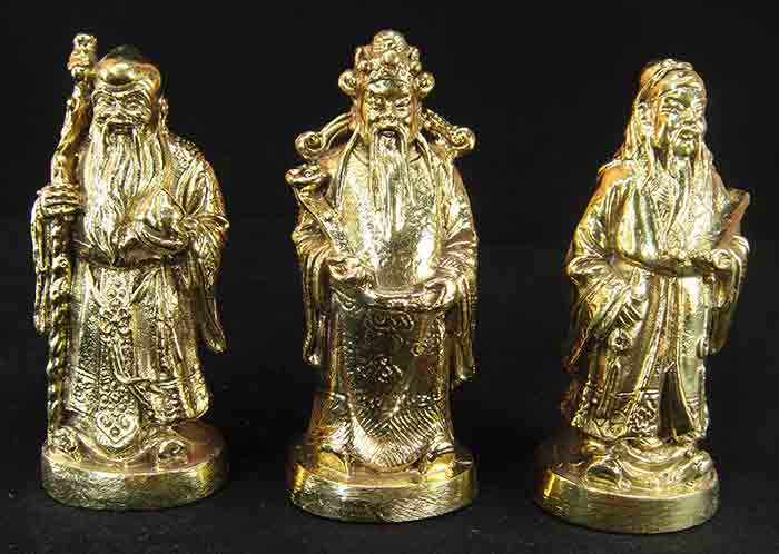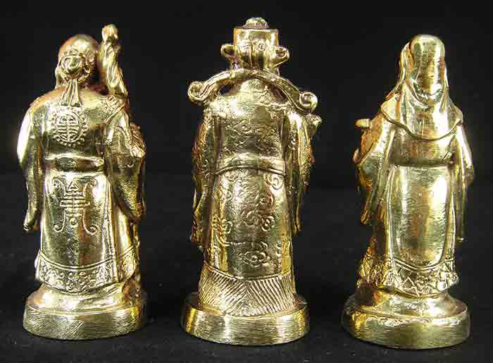 ฮก ลก ซิ่ว ขนาดบูชา เนื้อทองเหลือง ขนาดสูง 3 นิ้ว สัญลักษณ์ของอายุยืนและความรุ่งเรือง เสริมโชคลาภ อำนาจ และสุขภาพ บูชาเพื่อความเป็นสิริมงคล