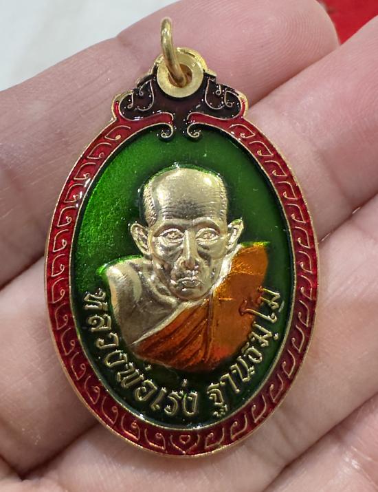 เหรียญชนะมาร ทรงไข่ลงยาสีเขียว และทรงอาร์ม หลวงพ่อเร่ง ฐานธมโม วัดดงแขวน จังหวัดอุทัยธานี จำนวน 2เหรียญ |