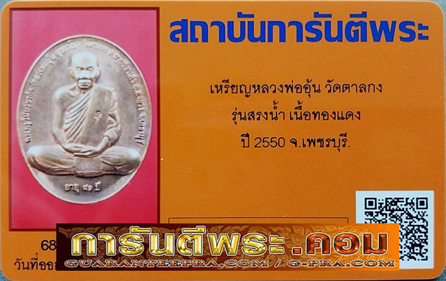 ชื่อพระเครื่อง เหรียญหลวงพ่ออุ้น วัดตาลกง รุ่นสรงน้ำ เนื้อทองแดง ปี2550