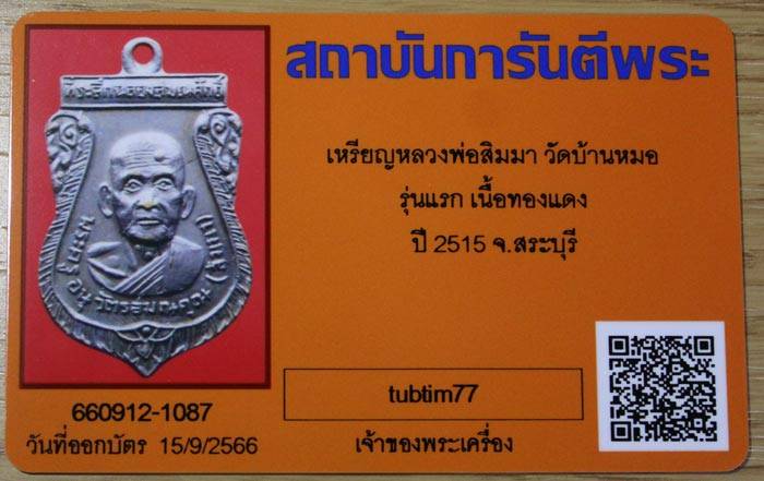 เหรียญรุ่นแรก หลวงพ่อสิมมาวัดบ้านหมอ จ.สระบุรี ปี2515 บล๊อคแตก นิยม สวยๆผิวเดิมๆ เกจิดังอำเภอบ้านหมอ ของ จังหวัดสระบุรี ประสพการณ์มากมาย พร้อมบัตรรับรองสถาบันการันตีพระ
