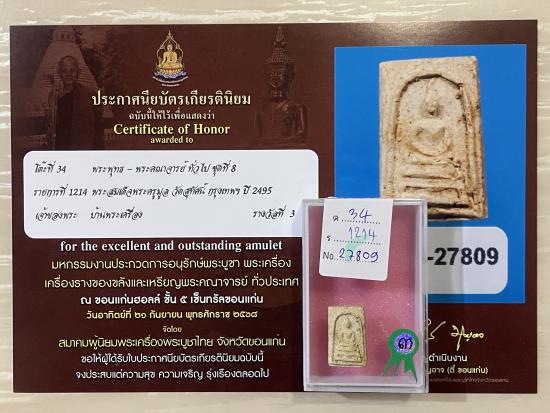 สร้างปี 2485 สภาพสวย สมบูรณ์ ไม่หักไม่ซ่อม รับประกันพระแท้ ดูง่าย ใบประกาศรางวัลที่3งานสมาคม