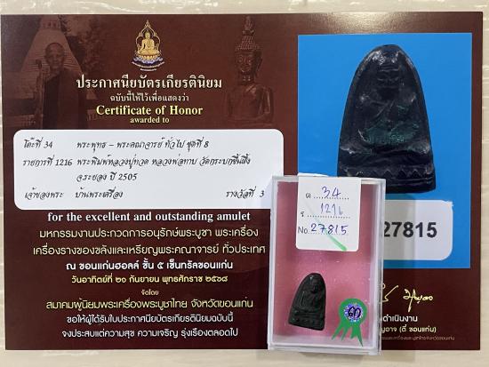 ติดสีผึ้ง หลวงปู่ทิมร่วมปลุกเสก สร้างปี 2505 สวยสมบูรณ์ผิวเดิมๆ ไม่หักไม่ซ่อม รับประกันพระแท้ ดูง่าย พร้อมใบประกาศรางวัลที่3งานสมาคม