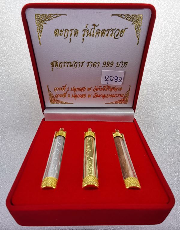 ตะกรุดโคตรรวยชุด3ดอกตรงรูป ตอกโค้ด กก(กรรมการ) หมายเลข 2282 ทั้ง 3 ดอก พร้อมสายคล้องคอ.รับประกันแท้ตามกติกา