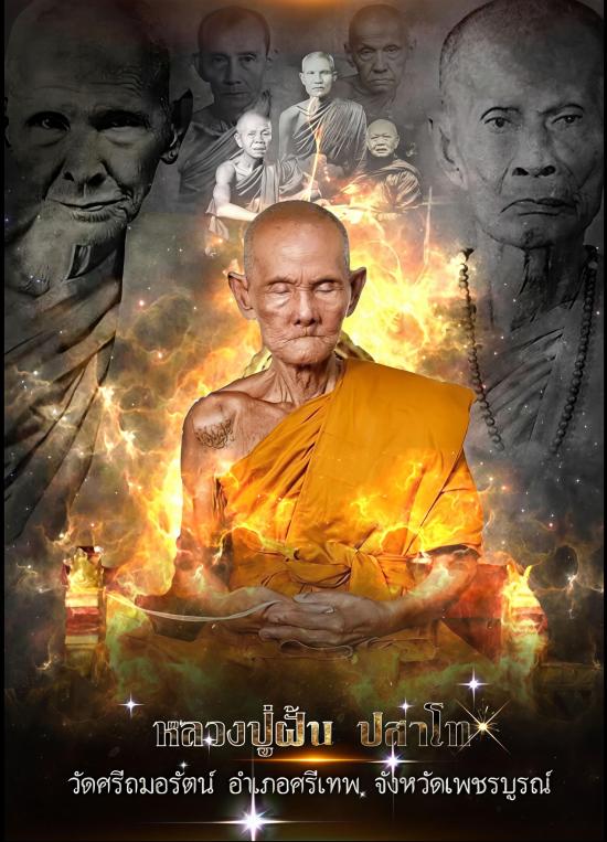 วงปู่ฝั้น ปสาโท วัดศรีถมอรัตน์(หน้าผา) เพชรบูรณ์ ท่านเป็นศิษย์ หลวงพ่อเดิม (สามเณรเลี้ยงช้างหลวงพ่อเดิม) หลวงพ่อกวย หลวงพ่อทบ ท่านเดินธุดงวัตร ทั่วประเทศไทย 3 รอบรุ่น เสมา 8 รอบ