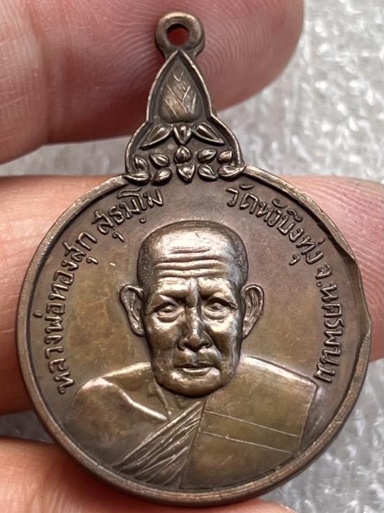 เหรียญรุ่นแรกหลวงพ่อทองสุก วัดหัวบึงทุ่ง จ.นครพนม พ.ศ.๒๕๒๐ เนื้อทองแดง ศิษย์สร้างถวาย ตอกโค๊ต "นะ" ด้านหลังเหรียญ