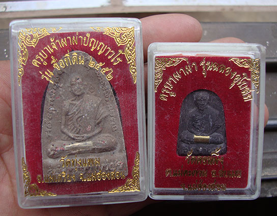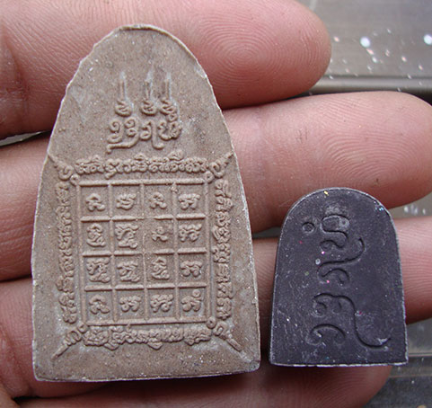 พระผงครูบาผาผ่า พิมพ์ใหญ่ ฝั่งตะกรุดเงิน + พิมพ์เล็ก ฝั่งตะกรุด ( 2 องค์ กล่องเดิมครับ
