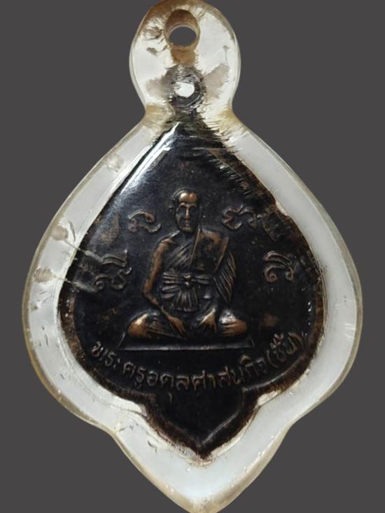 A8243.เหรียญพระครูสันติธรรมรส (ไพเราะ) วัดสันทรีย์ ปราจีนบุรี ปี 2537 เลี่ยมพลาสติกเก่า เคาะเดียวเเดง
