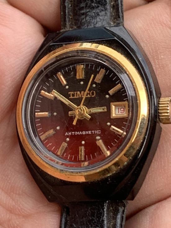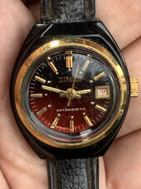 สวยๆตามรูป สภาพสวยตามกาลเวลา แท้วินเทจยุค70-80เรือนสีดำขอบเข็มหลักทอง ฝาหลังแสตนเลส สตีล วันทีเดินปกติ