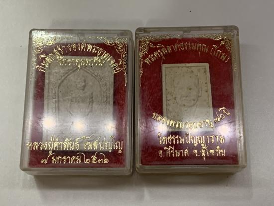 พระรูปเหมือนหลวงปู่คำพันธ์ วัดธาตุมหาชัย 2536 + พระผงรูปเหมือนหลวงพ่อโถม หลังยันต์ตรีนิสิงเห 2534