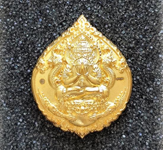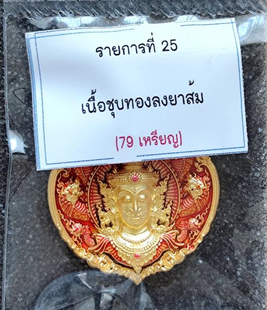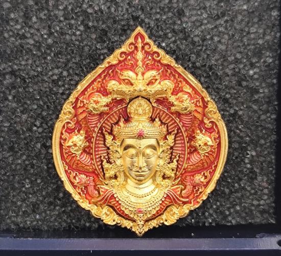 เหรียญหล่อพุทธศิลป์ จตุคาม รุ่นดวงดี159 เนื้อชุบทองลงยาส้ม No.๓๓ พร้อมกล่องเดิม ขนาดเหรียญ 2.3×2.8 cm.