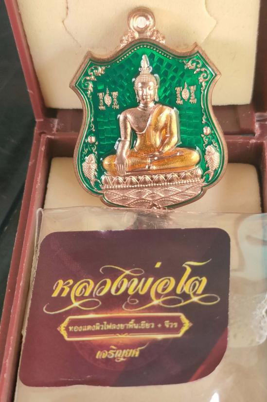 เหรียญหลวงพ่อโต รุ่น"เจริญยศ"ประวัติศาสตร์ตำรวจ๒๕๖๘ วัดบางพลีใหญ่ใน จ.สมุทรปราการ พิมพ์เหรียญอาร์ม เนื้อทองแดงผิวไฟ คุ้ยพื้นลงยาเขียว ลงยาจีวร หมายเลข ๑๗๕ พร้อมกล่อง เหรียญสวยมากคับ เลขสวยๆน่าเก็บคับ