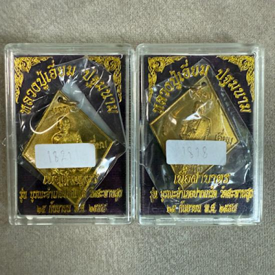 หลวงปู่เอี่ยม วัดสะพานสูง นนทบุรี รุ่นบูรณะอำเภอปากเกร็ด เนื้อฝาบาตร 2 องค์ สวยกล่องเดิม ยังไม่แกะซีล |