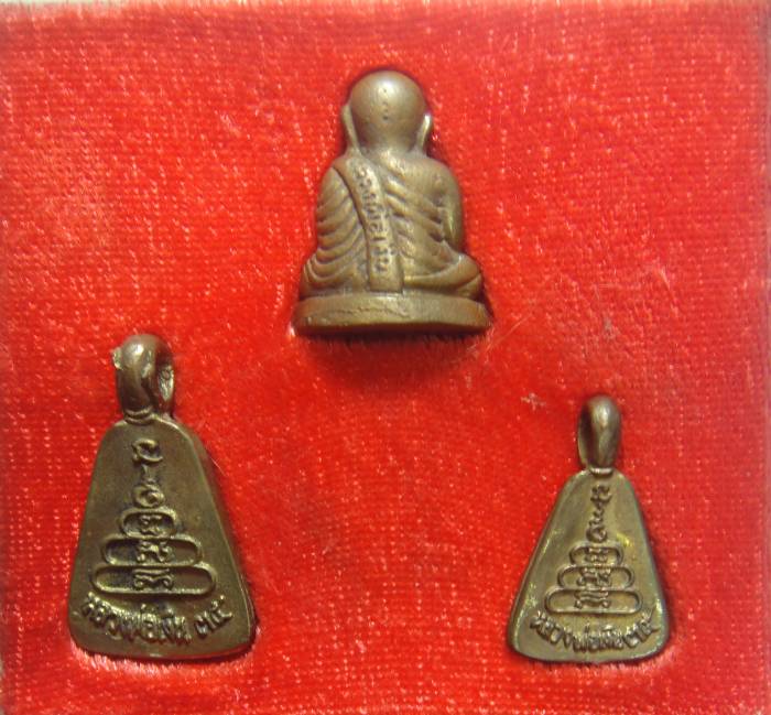 พระหลวงพ่อเงิน วัดหิรัญญาราม (วังตะโก) ต.บางคลาน อ.โพทะเล จ.พิจิตร รุ่นฉัตรมงคล มหาพุทธาภิเษก วันพุธที่ 12 กุมภาพันธ์ พ.ศ. 2535 ใน 1 ชุดมี 3 พิมพ์พร้อมกล่องเดิม