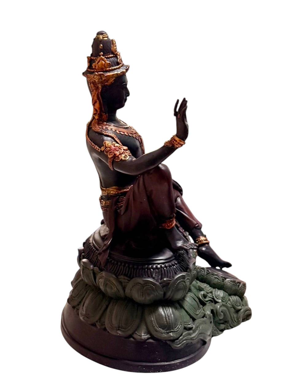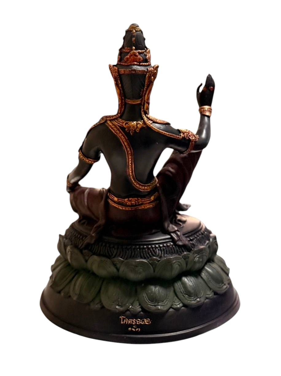 พระบูชา จตุคาม รามเทพ รุ่นโคตรรวย ปางมหาราช ชุดนำฤกษ์ วัดโคกโพธิ์สถิตย์ เนื้อโลหะรมมันปู หมายเลข 153 ขนาดกว้าง 7 นิ้ว สูง 15 นิ้ว
