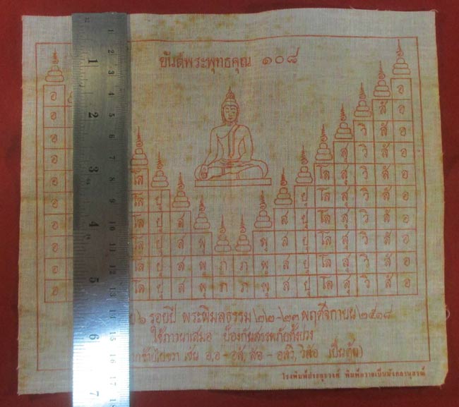 ผ้ายันต์ พระพุทธคุณ ๑๐๘ อนุสรณ์ครบ ๖ รอบปี พระพิมลธรรม ๒๒-๒๓ พฤศจิกายน ๒๕๑๘ ครับ (พระบ้าน ครับ) |
