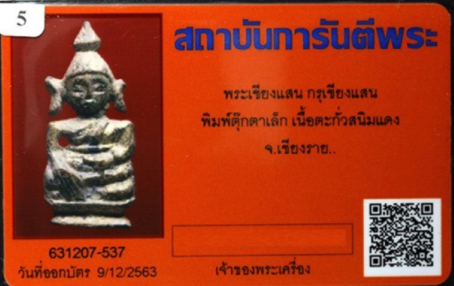 พระเชียงแสน กรุเชียงแสน พิมพ์ตุ๊กตาเล็กสนิมแดง สภาพสวยสมบูรณ์ มาพร้อมบัตรรับรอง