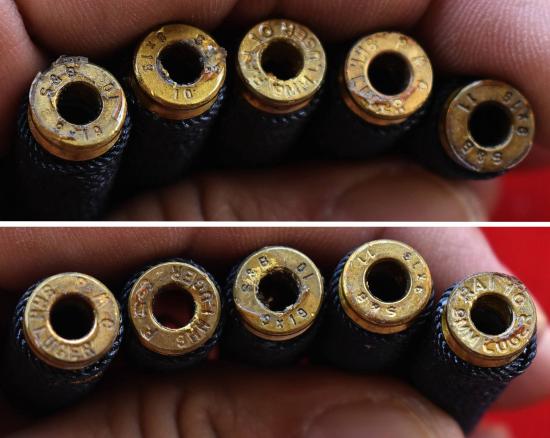 ชุด 5 ดอก...ตะกรุดปลอกลูกปืน (แคล้วคลาด ป้องกันอันตราย) ปี 2555 หลวงปู่เฉลิม วัดบุญนาคประชาสรรค์ จ.สมุทรสงคราม พร้อมซองรูปเดิมจากวัด สภาพพระตามรูปที่ลงทุกประการ (ขนาดยาวประมาณ 3.8 ซม.)
