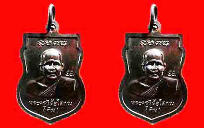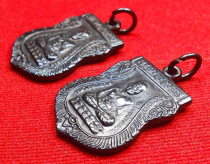 2 เหรียญ เสมาเล็กเนื้อทองแดงรมดำ หลวงพ่อทวด วัดช้างให้ หลังอาจารย์ทิม เสาร์ 5 ปี 2555