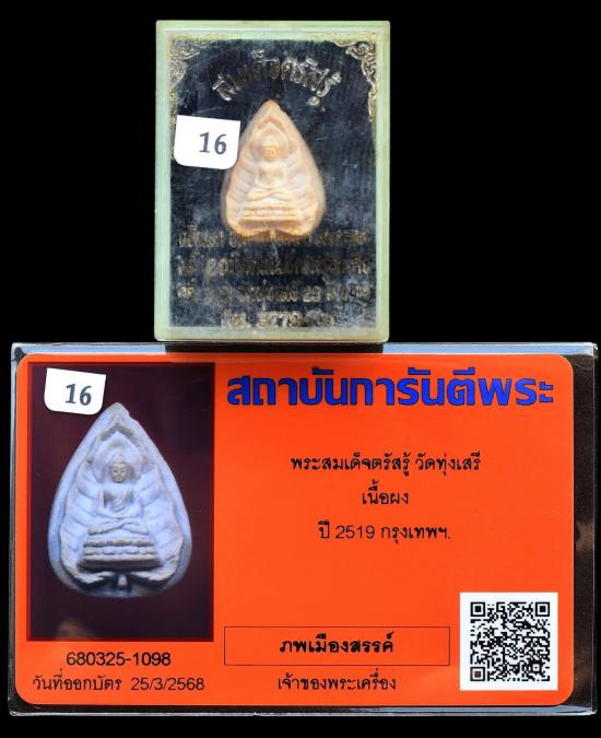( 16 ) พระสมเด็จตรัสรู้ วัดทุ่งเสรี เนื้อผงพุทธคุณ ปี 2519 หลวงปู่โต๊ะ , อ.ชุม ไชยคีรี และ พระเกจิรวมปลุกเสก มีกล่อง + บัตรรับรองพระแท้การันตีพระ |